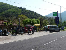 Am Sonntag früh saßen wir alle um 08.30 Uhr schon wieder am reichlich gedeckten Frühstückstisch und bevor Hubi und ich etwa 1 Stunde später zu unserer ersten Tagestour durch die Cevennen aufbrachen, erhielten wir von Uwe anhand einer großen, regionalen Landkarte nützliche Routenempfehlungen für den Tag. Zuerst betankten wir unsere Maschinen noch an der kleinen, sonntags vormittags geöffneten Tankstelle im nahegelegenen Valleraugue. Dies war uns wichtig, weil man dort noch direkt beim Tankwart bezahlen konnte: Im Verlauf unserer Anreise am Maifeiertag hatten wir nämlich die Erfahrung gemacht, dass französische Tankstellen an Sonn- und Feiertagen in der Regel nicht personell besetzt sind und ein Tanken nur per Kredit- oder EC-Karte an Automaten möglich ist. Unsere deutschen Maestro-Karten wurden allerdings nur selten von diesen Automaten akzeptiert... Auch Uwe hatte uns vor dem heutigen Tourstart vorsorglich nochmal auf diese Besonderheit hingewiesen, damit wir unterwegs nicht wegen eines Benzinmangels Probleme bekommen würden.